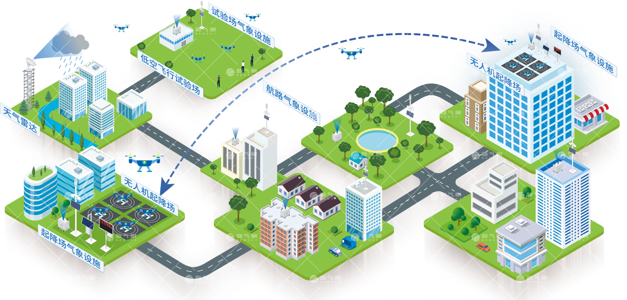 城市無人機起降場低空氣象保障解決方案是面向無人機運營商城市起降場氣象保障需求推出的一款氣象監測方案。通過將激光測風雷達、微型氣象站、大氣電場儀等探測設備部署在城市樓頂或者城市航路關鍵區域,可實現對起降場以及飛行路線上的氣象信息獲取,不僅能夠對無人機安全飛行提供氣象信息服務,還能夠為氣象部門開展城市氣象觀測網的規劃和建設提供更多前瞻性參考。