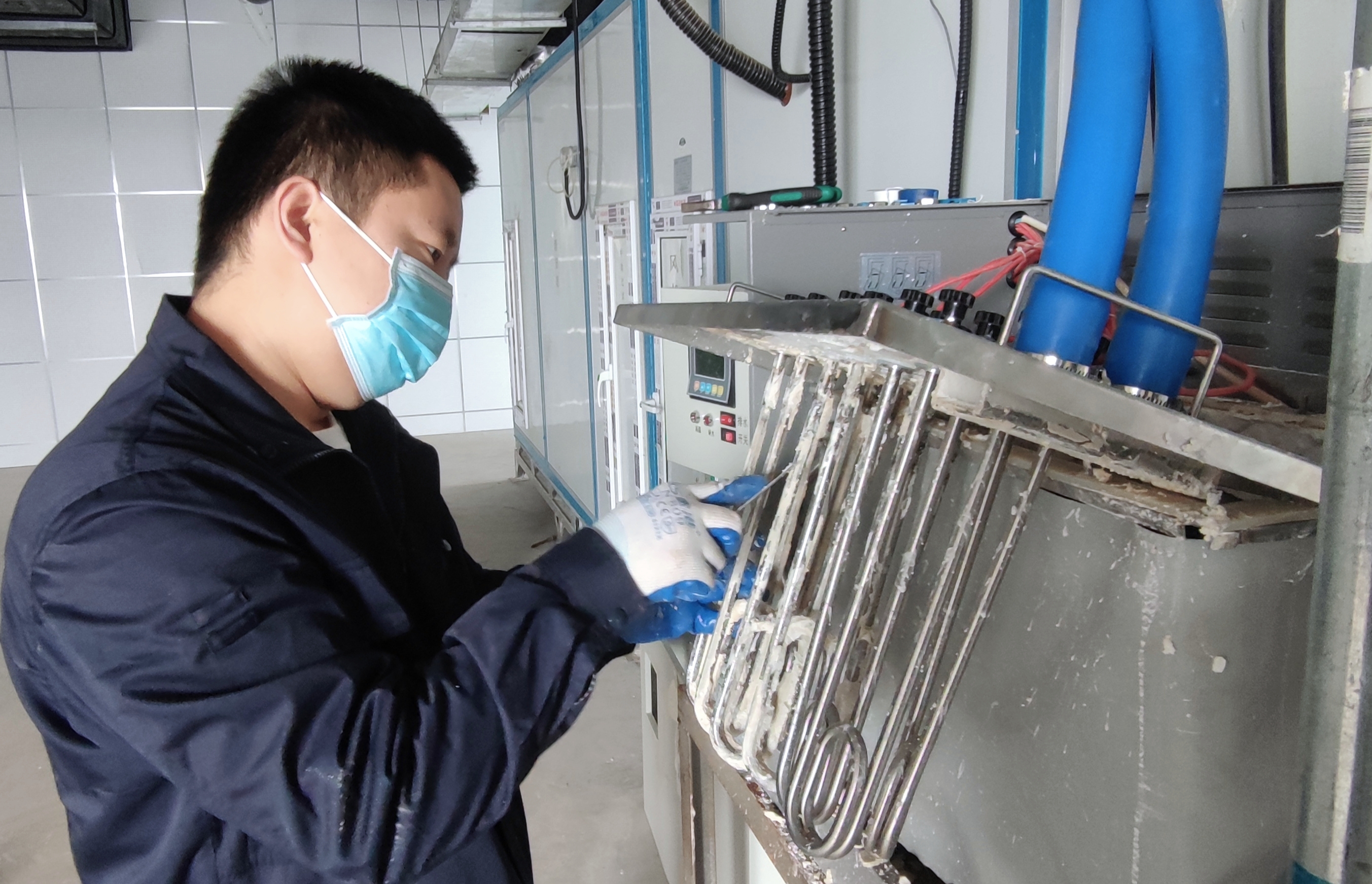 在生產(chǎn)基地,車間職工積極克服作業(yè)空間狹窄等不利條件,高質(zhì)高效地做好空調(diào)機(jī)組、供暖設(shè)備定期巡視檢查、維護(hù)保養(yǎng)工作,切實(shí)優(yōu)化送風(fēng)供暖效果。