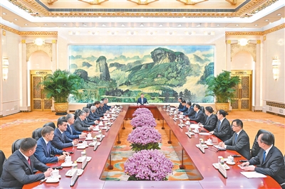 七月十五日上午,國家主席習(xí)近平在北京人民大會堂集體會見來華出席上海合作組織成員國外長理事會會議的各國外長和常設(shè)機(jī)構(gòu)負(fù)責(zé)人。新華社記者殷博古攝
