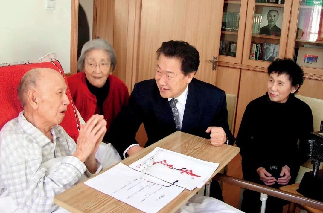 2005年12月,王永志(右二)夫婦探望恩師錢學森(左一)夫婦