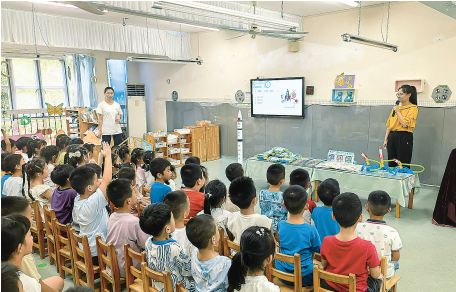 九部職工李申是愛心托管班服務(wù)團(tuán)隊(duì)中的志愿者,這個(gè)夏天,他成了孩子們最親密的“大朋友”。在安全教育、親子體育競(jìng)技等環(huán)節(jié),李申和同事們利用業(yè)余時(shí)間牽頭策劃,參與教學(xué)互動(dòng),幫助孩子們?cè)谔剿髦惺斋@知識(shí),在活動(dòng)中收獲友誼。
